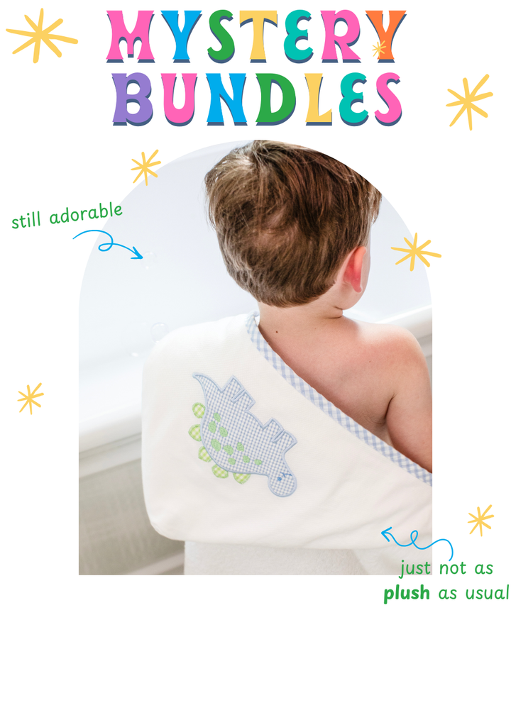 We made a happy little oops! These Everykid Towels are still darling, just not quite as plush as our usual favorites. Grab a set of 3 for $75 while they last! Choose between girl applique, boy, applique, and blanks bundles!